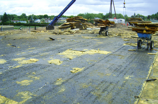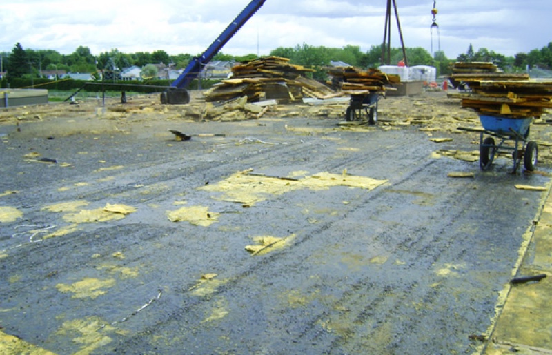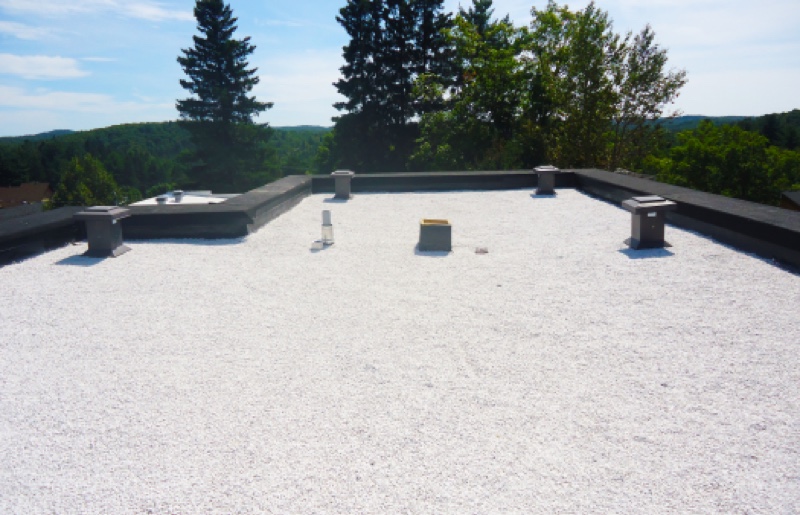 La toiture multicouche d’asphalte et gravier requiert un entretien au niveau des drains et des débris afin de protéger la membrane.